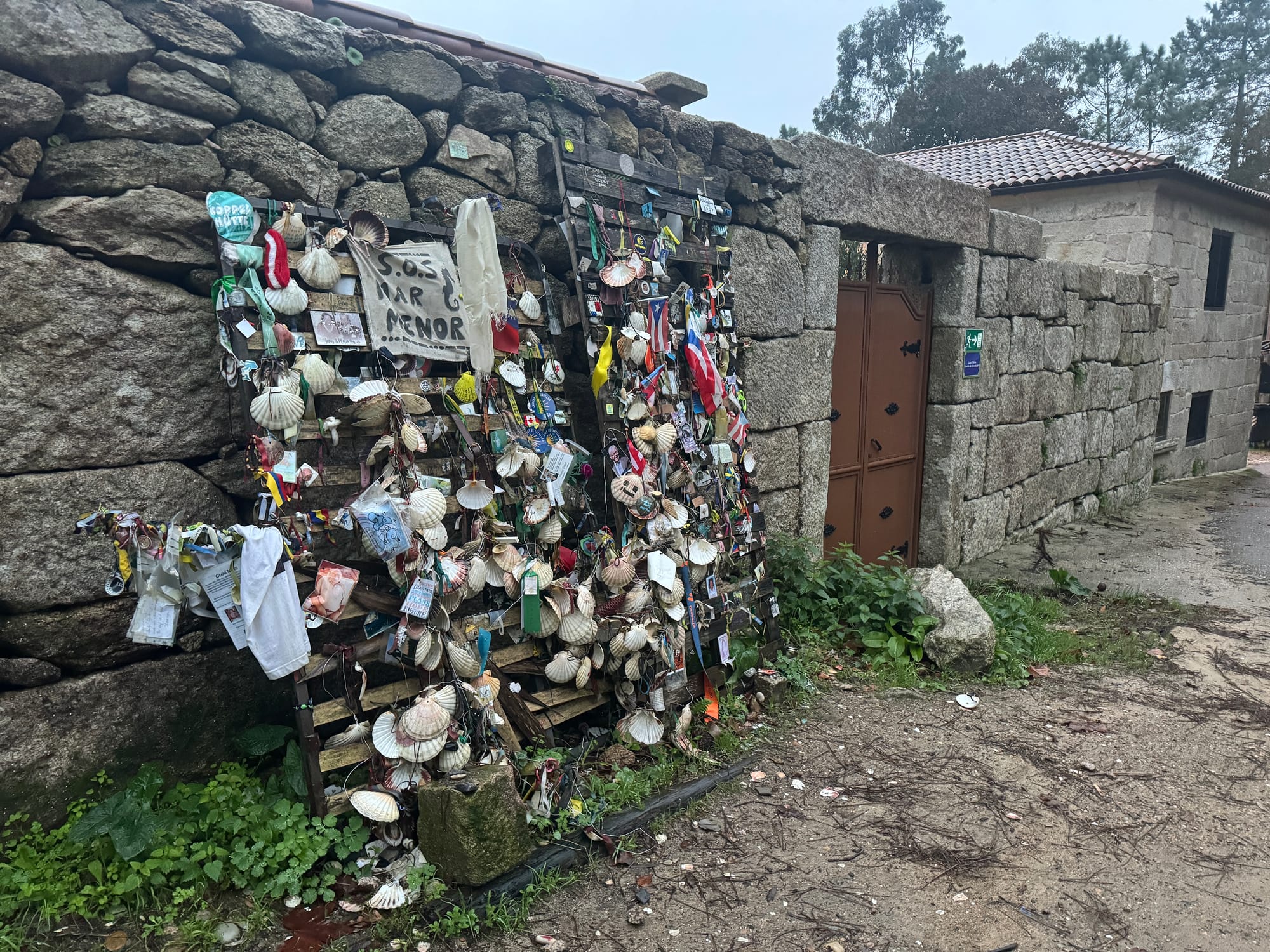 The only exception is when I see a guy ahead of me who was also in the Albergue the preceding night with me. We are ascending a forested part of the Camino with the coast to our left. He has a speedy pace and passes me as I contemplate a shrine with images of passed away loved-ones from former pelegrinos.